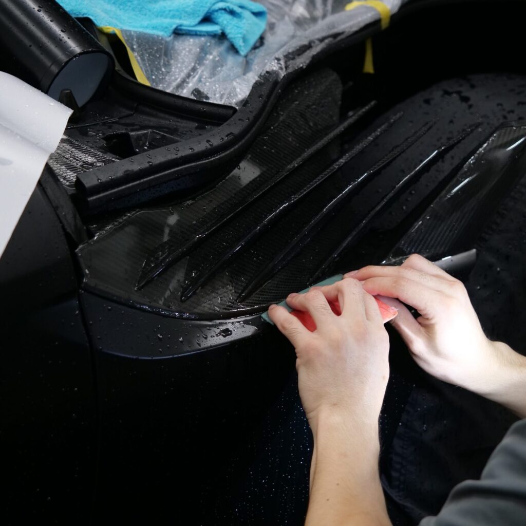 カーボンパーツは紫外線による色褪せ・白化・クリア層の劣化が起こりやすい部分ですが、PPF施工によりそのリスクを大幅に軽減できます。