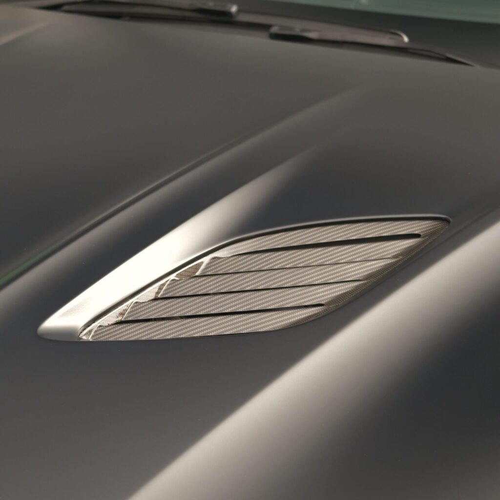 DBS Superleggeraは、外装の多くにカーボンパーツを使用した非常に複雑な造形が特徴で、