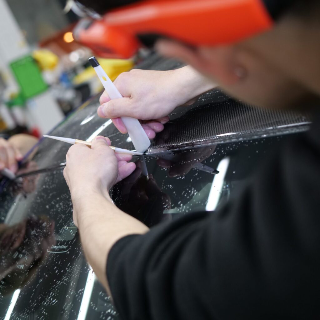カーボンの質感をそのまま活かすためにルーフには透明PPFを施工しています。