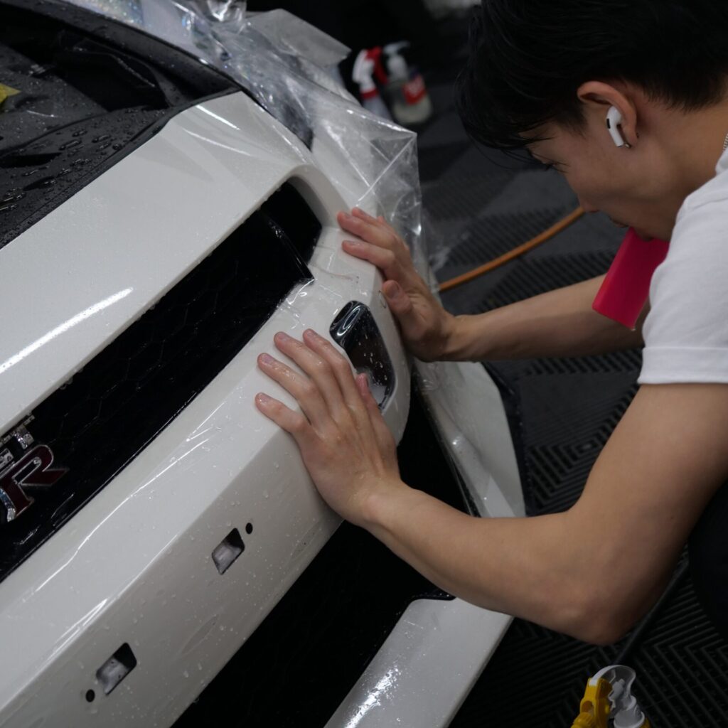 NISSAN GT-R R35に、フロントフルPPF施工とロッカー部分の施工を行いました。