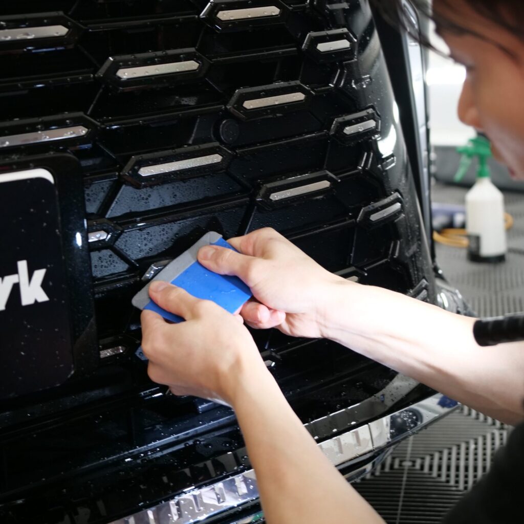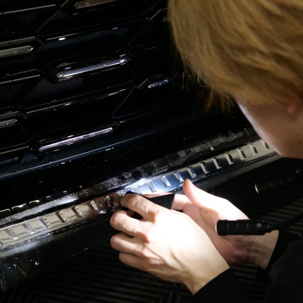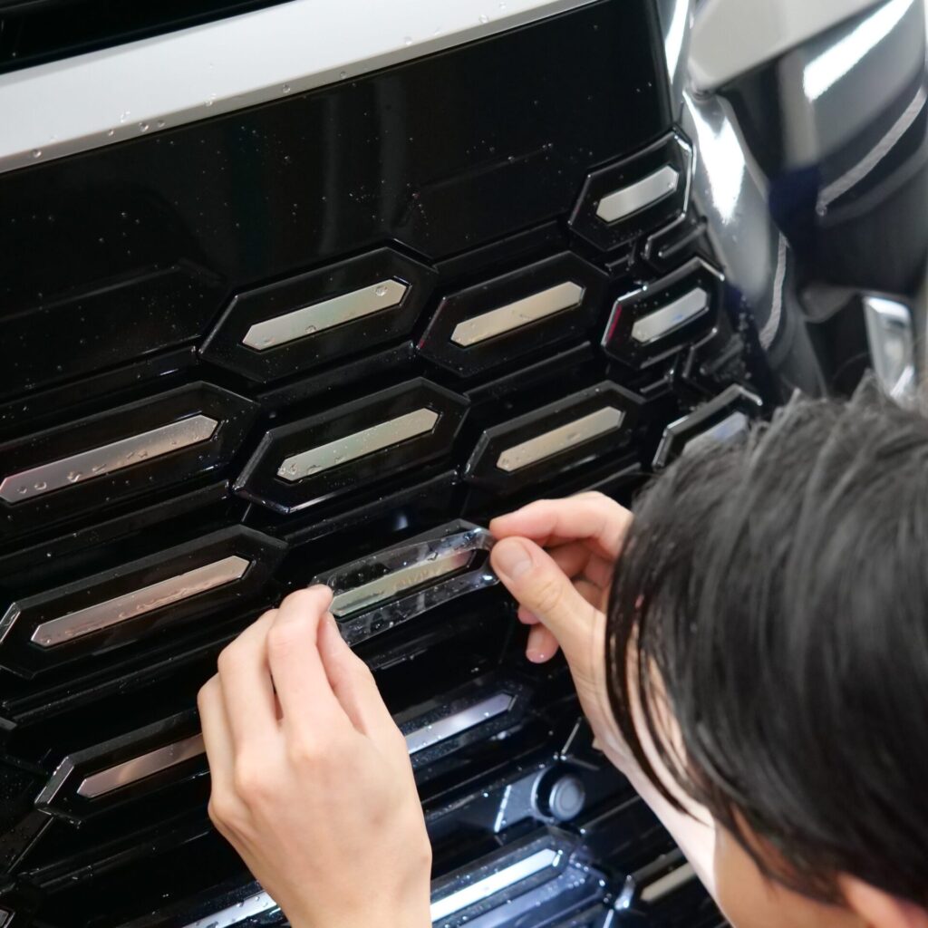 さらに今回は、フロントグリル部分の施工も含めた内容となっています。