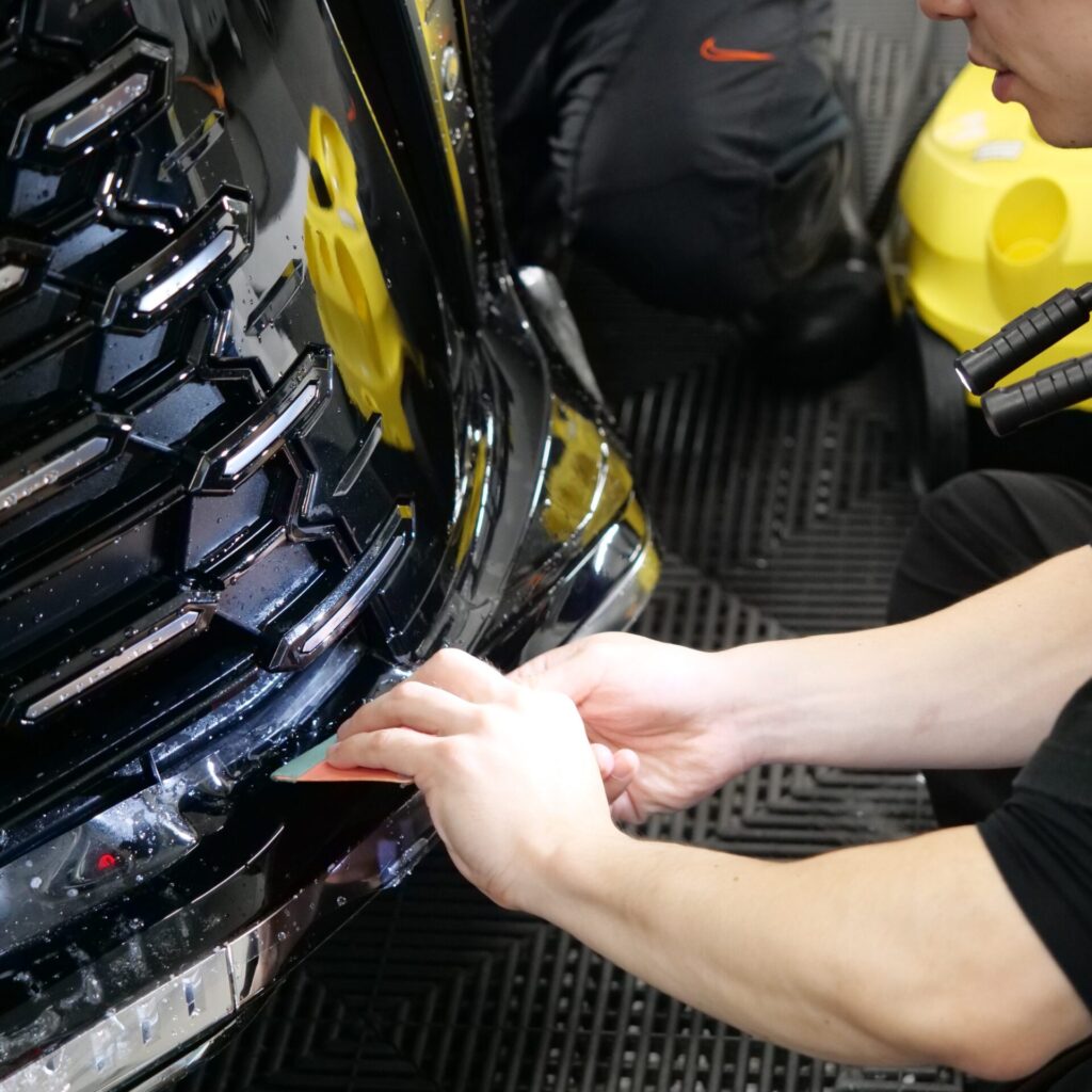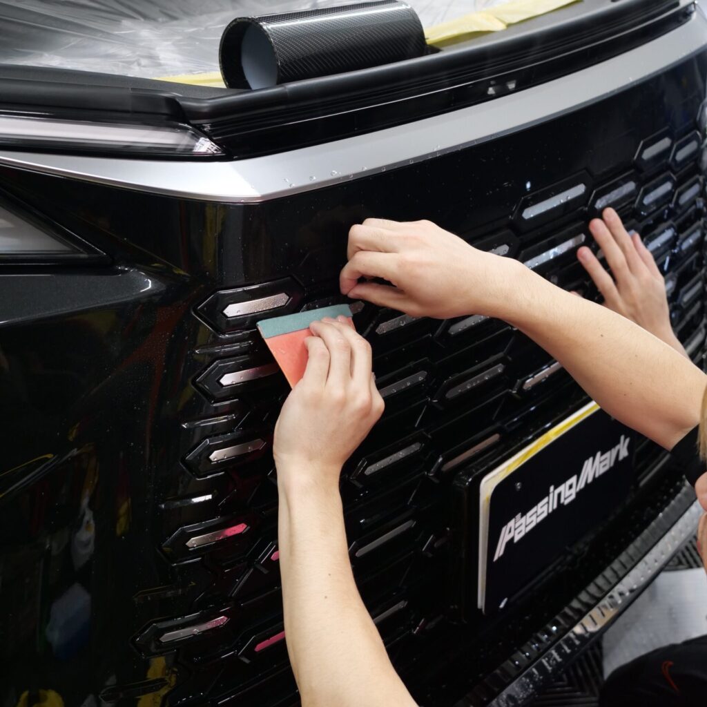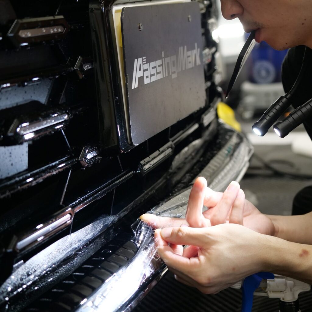 さらに今回は、フロントグリル部分の施工も含めた内容となっています。